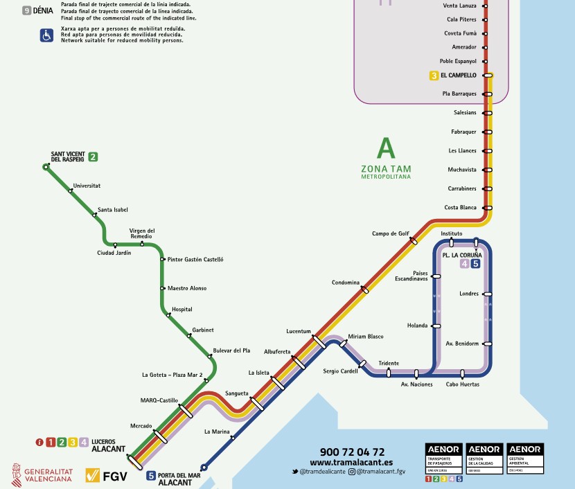 - Tram Alicante bybanen som bla. går ut til San Juan stranden